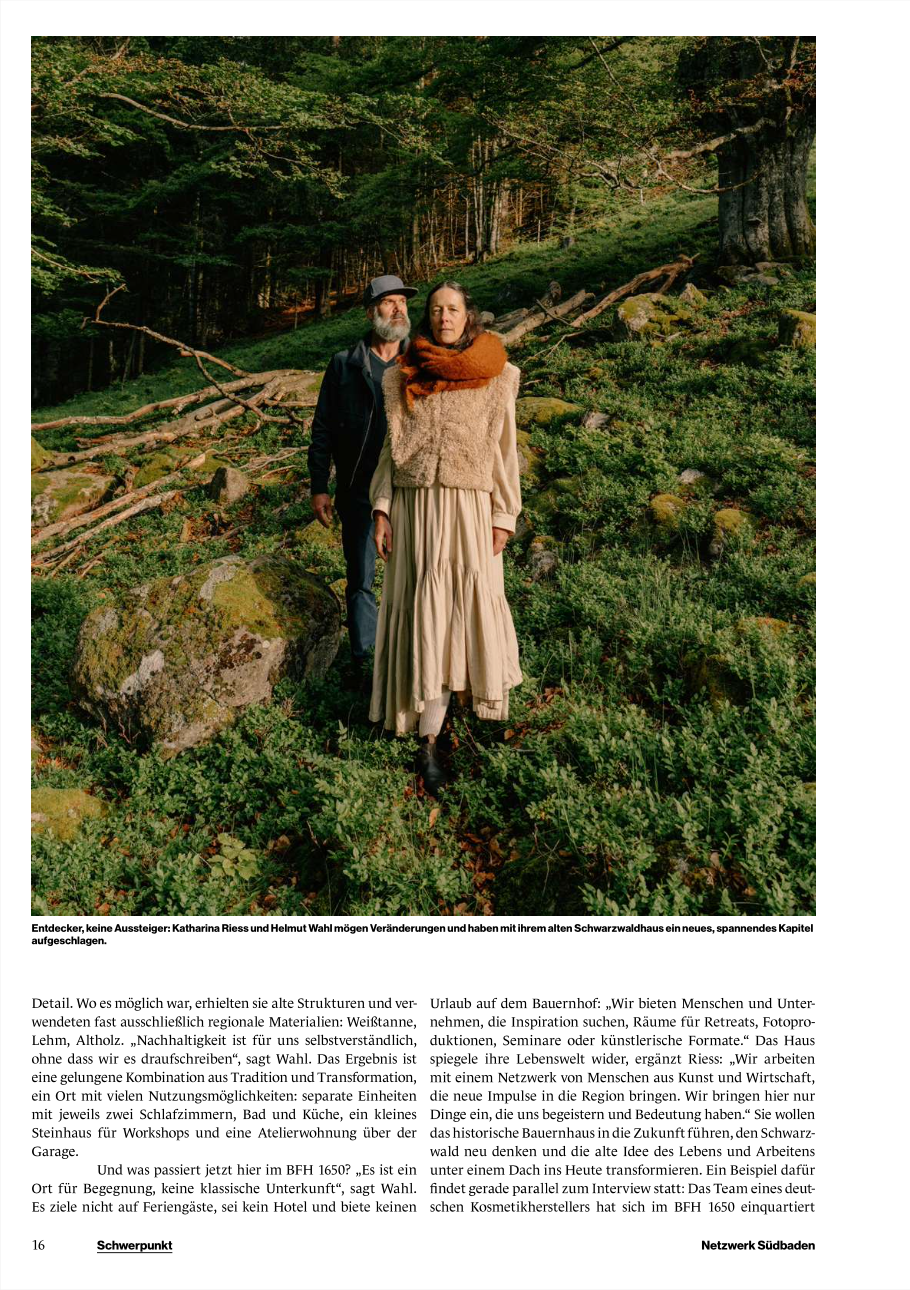 Unsere Geschichte von der Corporate World in den Wald und unsere Vision hinter @BFH1650 – die Transformation eines traditionellen Schwarzwälder Bauernhauses in einen modernen Hub für Kreativität, Gemeinschaft, Reflexion und Experimentierfreude. "Wir wollten erleben, was das Leben auf einem Bauernhof in der heutigen Zeit bedeuten kann und wie wir beide Welten (Los Angeles und Schwarzwald) in unserem Leben verknüpfen können". Unsere Absicht war es nie eine Ort zu kreieren um der Realität zu entfliehen, sondern vielmehr einen Ort zu schaffen, der Werte vermittelt, der zum Entdecken anregt und die Reise zu Erneuerung und Verbundenheit ermöglicht. „Wir kreieren Erlebnisse und bringen Menschen zusammen – Entdecken statt Konsumieren.“
